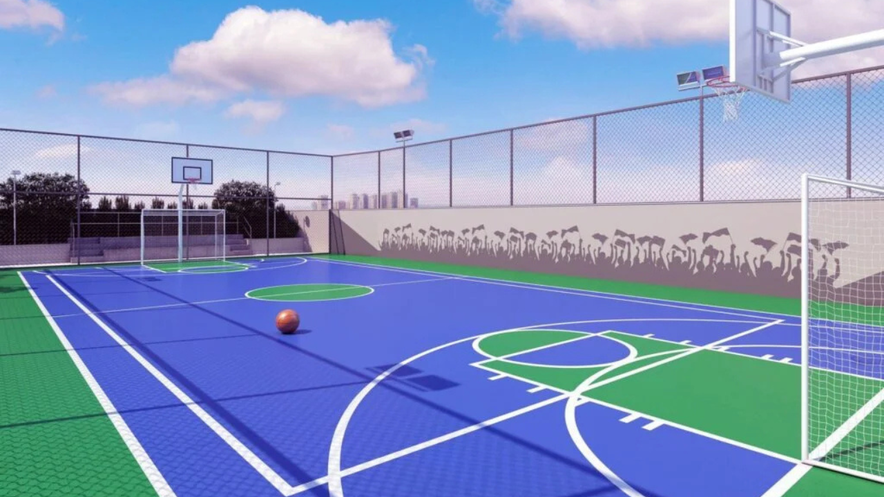 Espaço completo para a prática de esportes e atividades físicas, projetado para incentivar o lazer, a saúde e a convivência. Uma quadra versátil que transforma momentos de exercício em diversão e bem-estar para todas as idades.