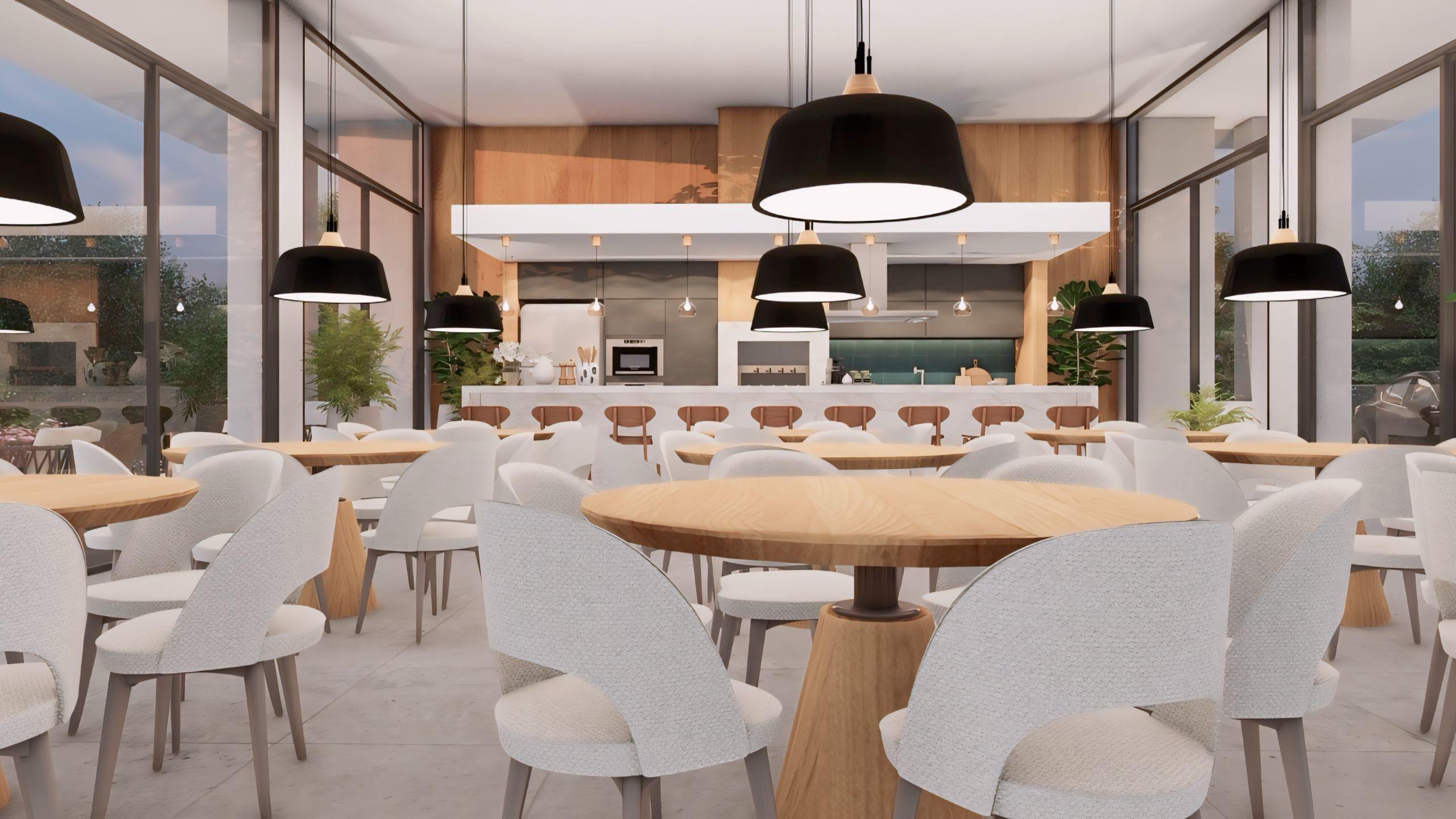 Área Social com Espaço Gourmet e Academia, com vista exuberante para o bosque e para o Playground.